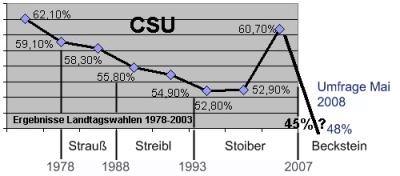 Auch ist das Vertrauen der Bevölkerung in die beiden Machttiere nicht besonders groß. 48% sind in Bayern mit Beckstein's Arbeit zufrieden, bei Huber nur 28%. Nun soll das neue Steuerkonzept der Partei helfen.